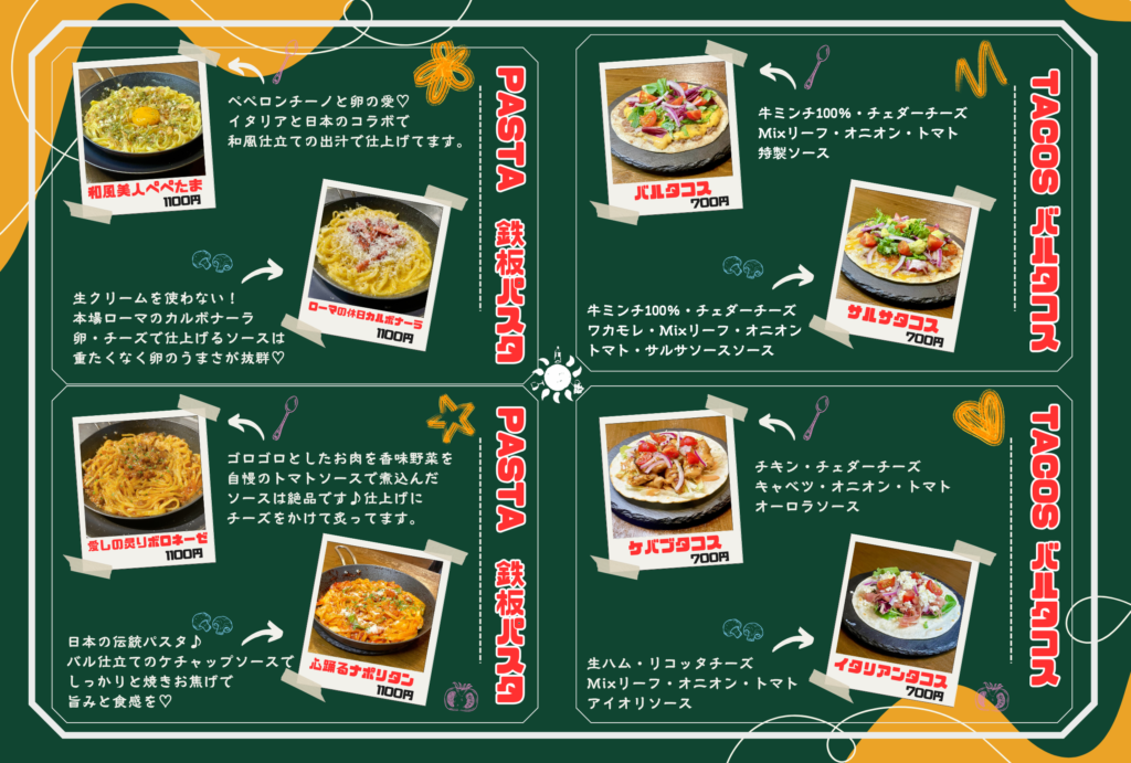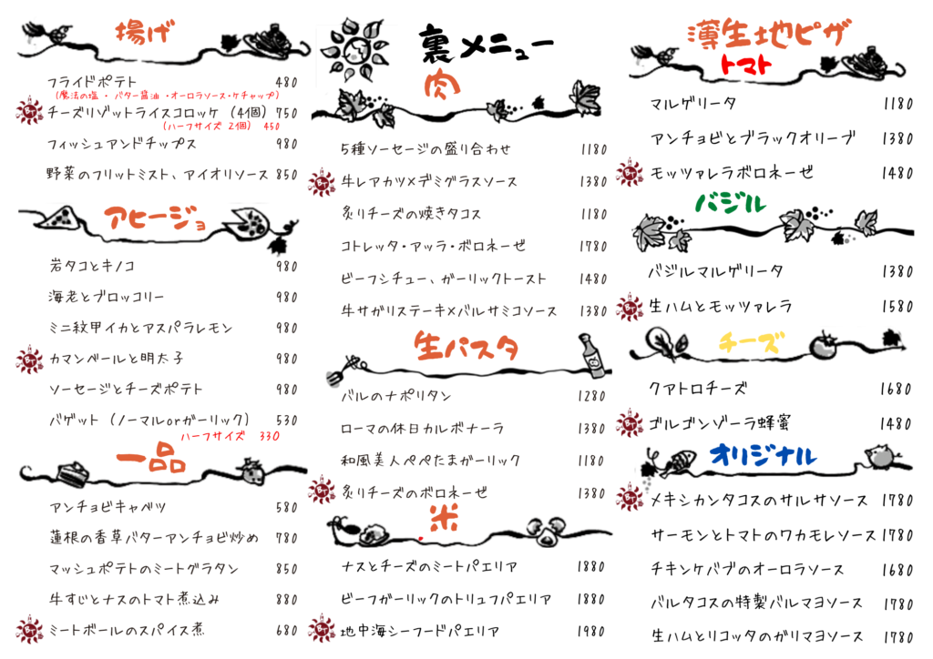イタリアンメニューや気まぐれメニューを