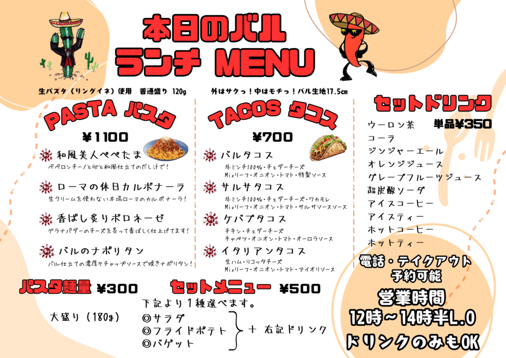 バルランチ再開致しました。